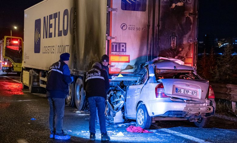 Ankara Çevreyolu istikameti Etlik mevkisinde O.K. yönetimindeki araba gece saatlerinde tıpkı istikamette ilerleyen tırın dorsesine arttan çarptı. Kazanın tesiriyle dorsenin altına sıkışan araç, kısa müddette alev aldı.