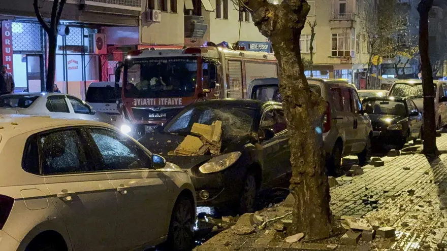 Balkonlardan kopan beton modüllerinin bir kısmı sokağa, bir kısmı ise park halindeki araçların üzerine düştü.