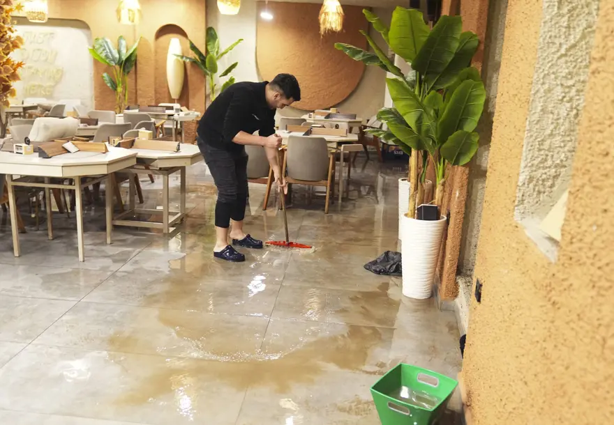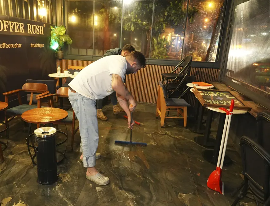 Su birikintileri ve sel nedeniyle şoför ve vatandaşlar yol ile kaldırımlarda ilerlemekte zorlanırken, esnaf ise işletmelerine giren suları tahliye etmeye çalıştı.