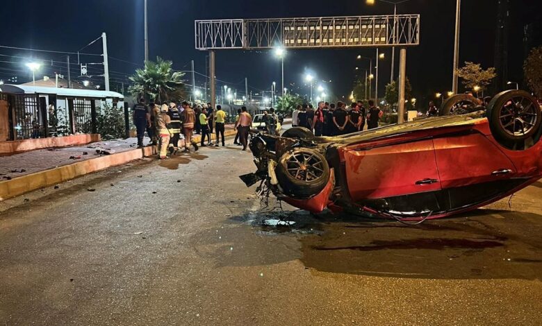 Hatay’ın İskenderun ilçesinde şoförü şimdi öğrenilemeyen araba, Prof. Dr. Muammer Aksoy Caddesi’nde kaldırımda yürüyenlere çarparak takla attı.