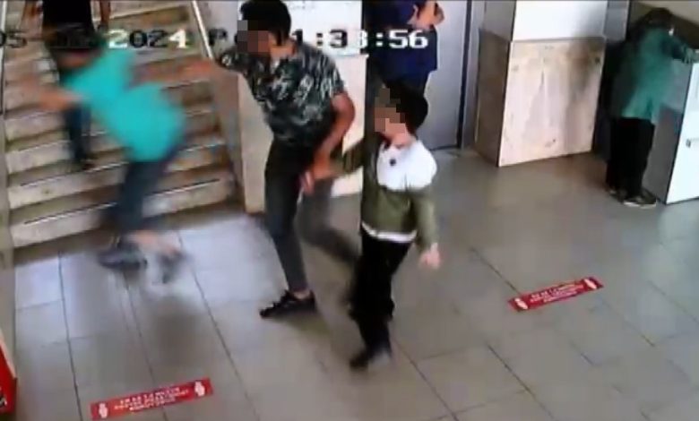 Öte yandan yaşanan olay güvenlik kameralarına yansıdı. Manzaralarda, engelli genci okulun içinde duvara yanlışsız iten H.O.’nun akabinde üst kata çıkan gencin peşinden koşarak gittiği görüldü. İmgelerin farklı bir noktasında ise, H.O. ile öğretmenin yeniden yan yana geldiği, gencin bir anda yere düşme anı, akabinde da öbür veli ve öğrencilerin toplanması yer aldı.