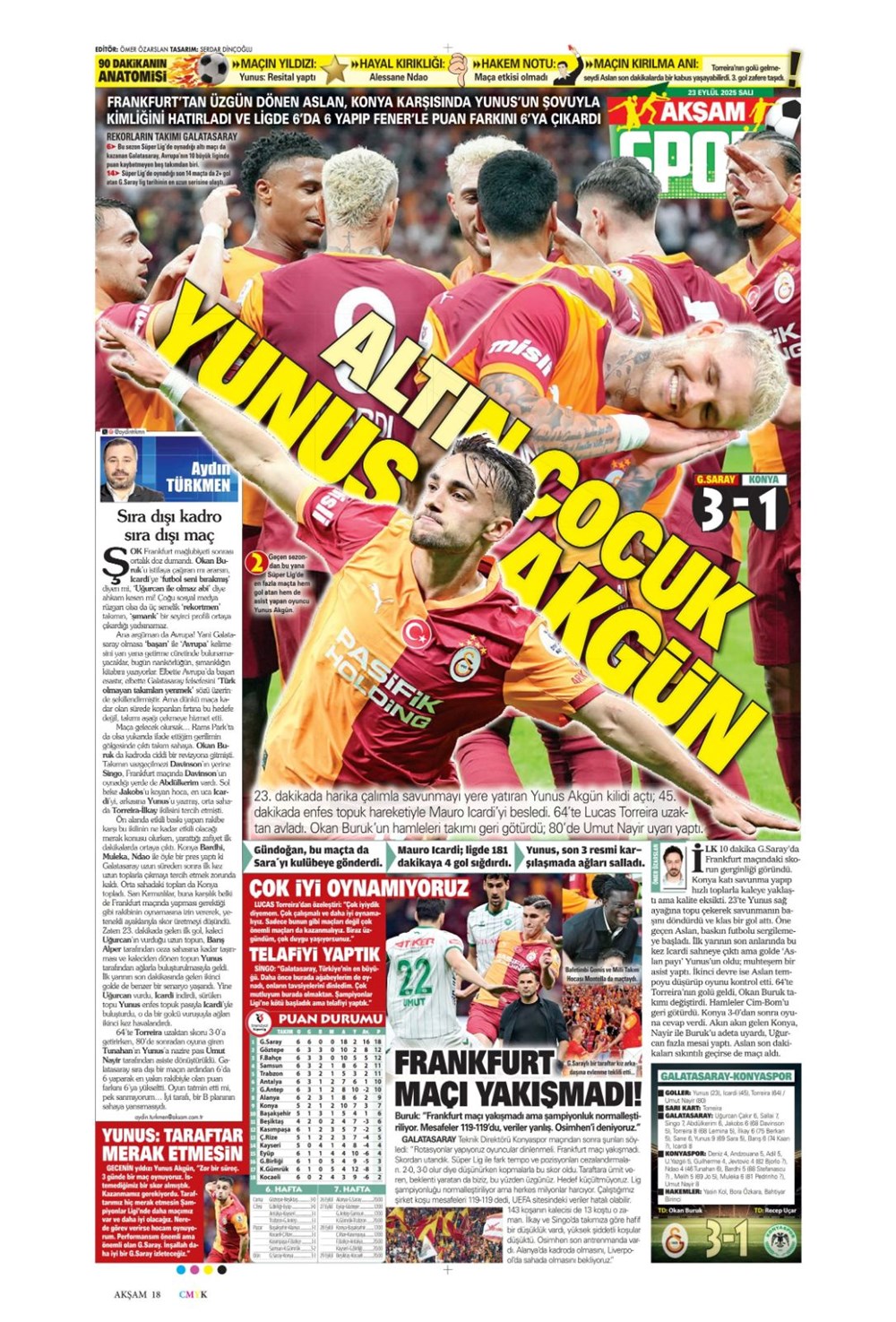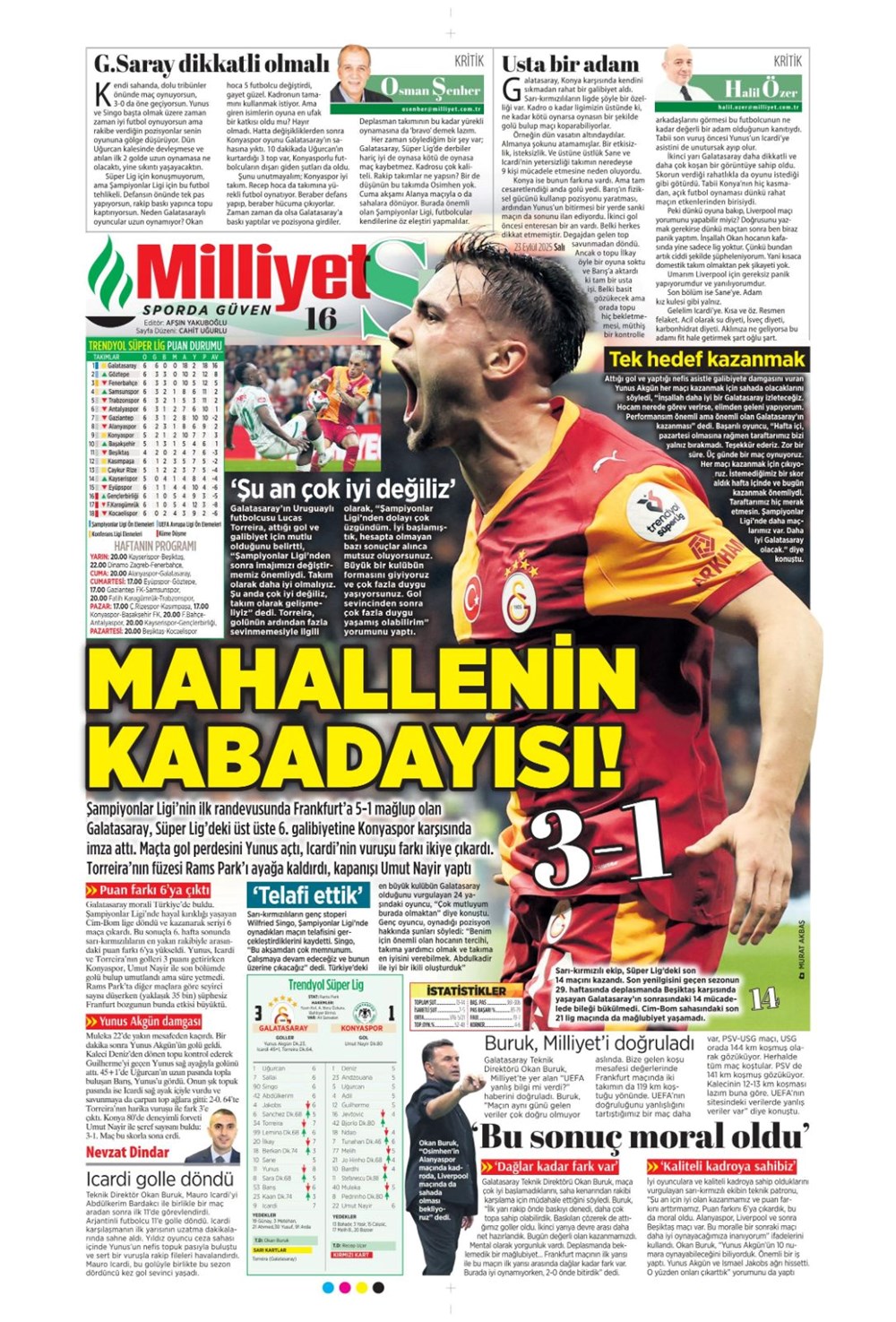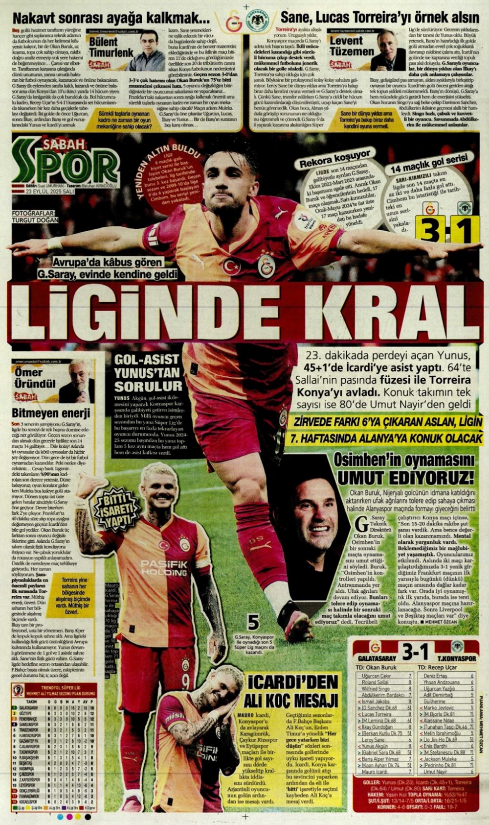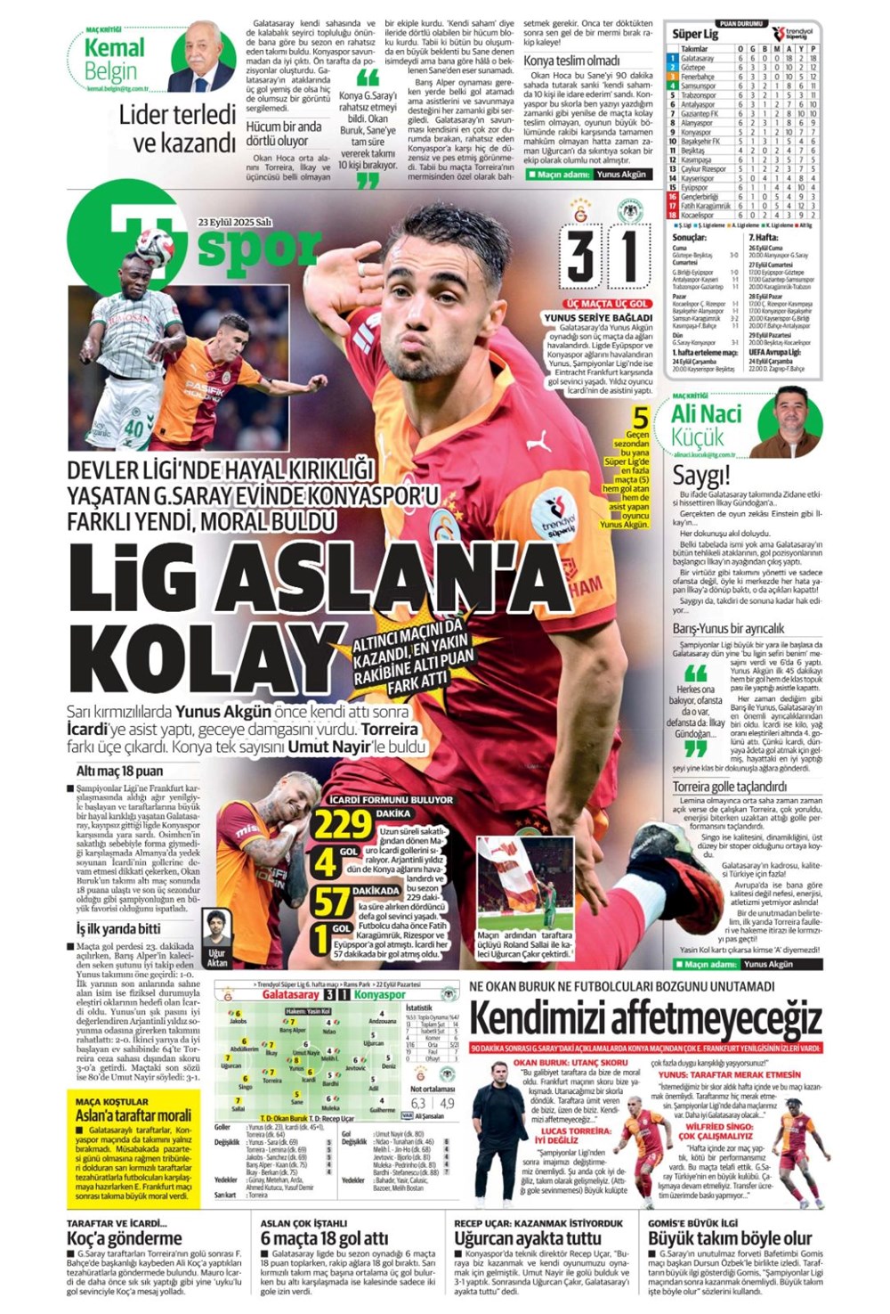 “Süper Lig’in Aslan’ı” (23 Eylül spor manşetleri)