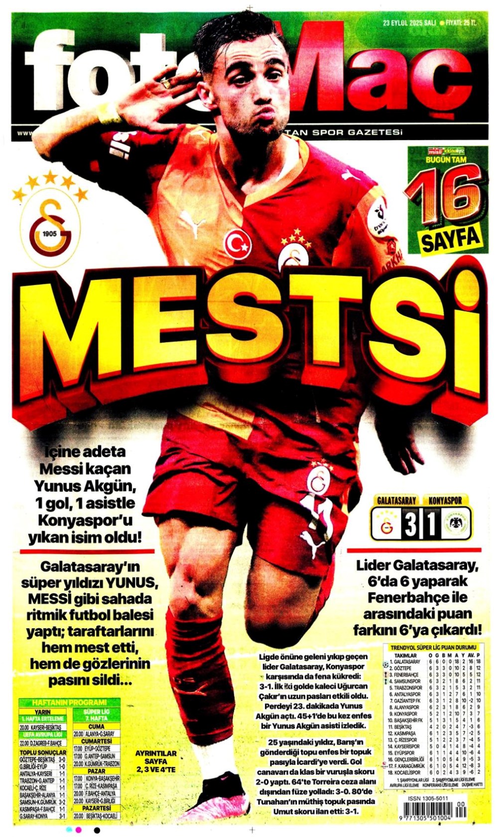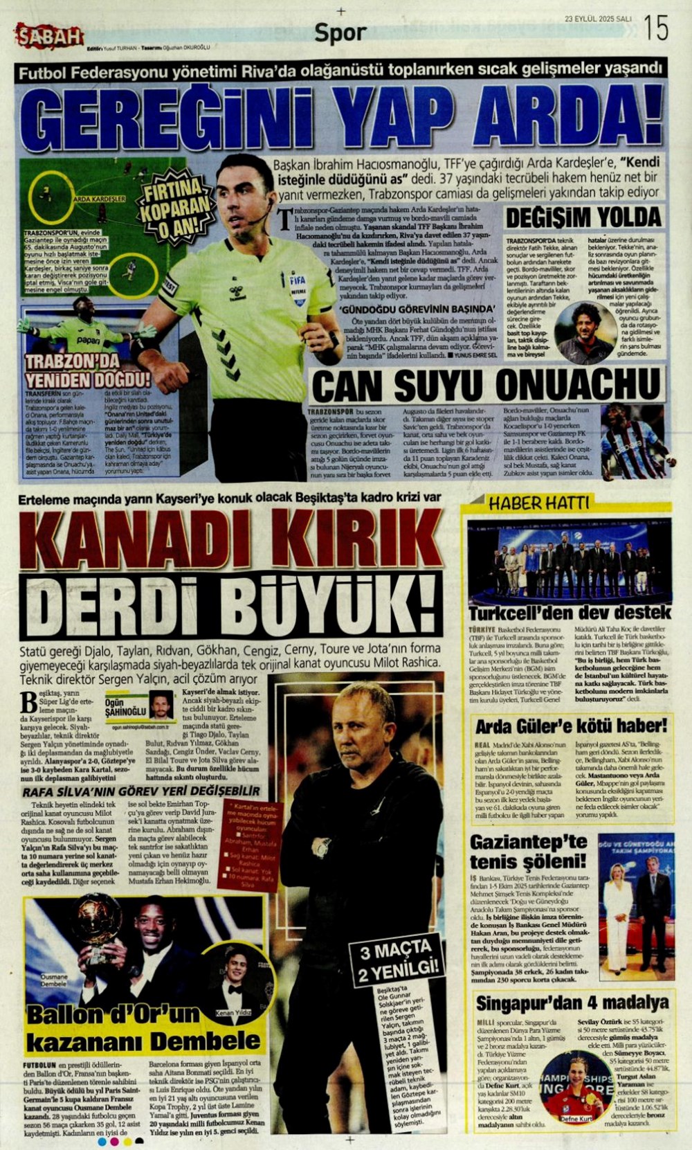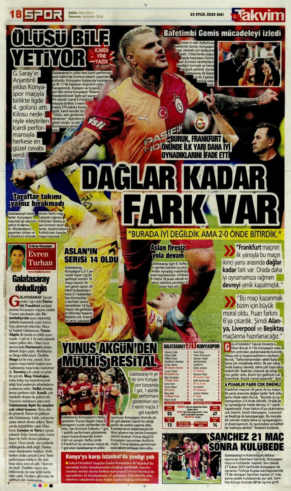 “Süper Lig’in Aslan’ı” (23 Eylül spor manşetleri)