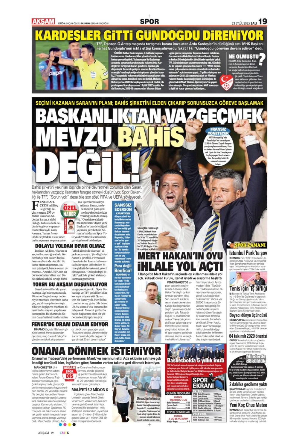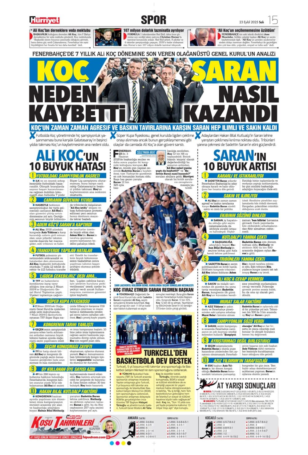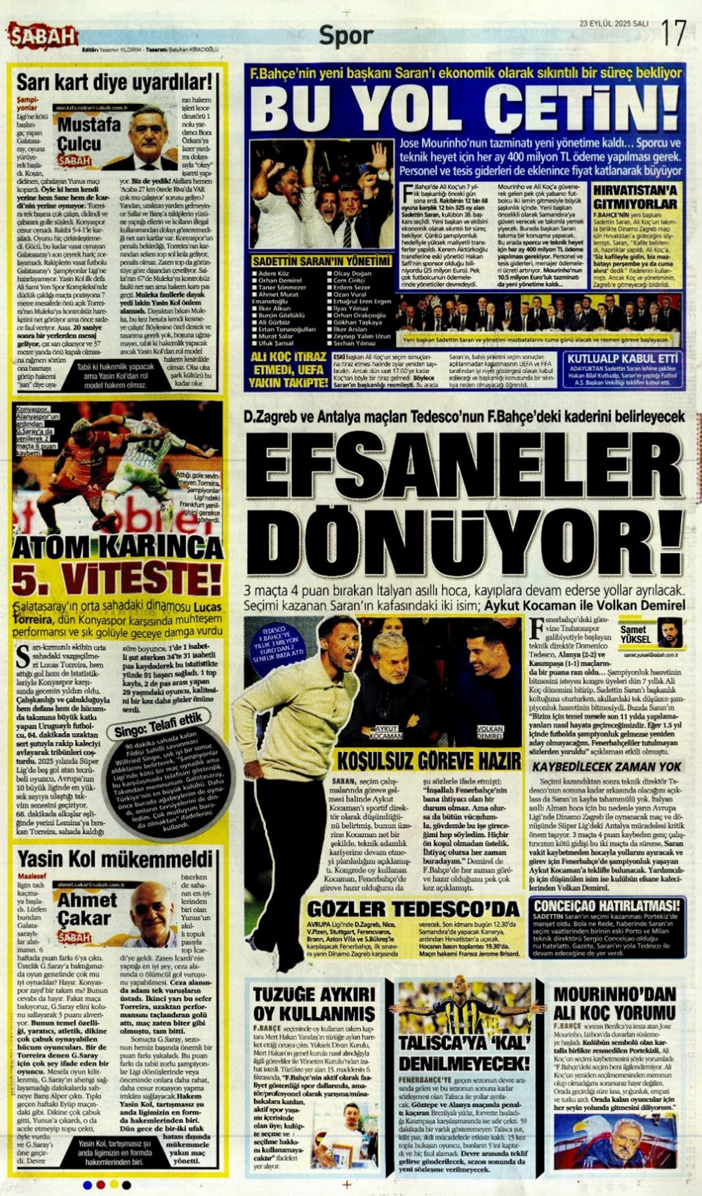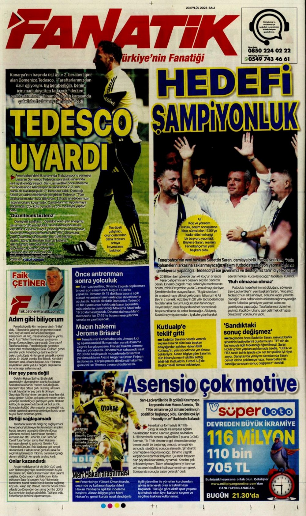 “Süper Lig’in Aslan’ı” (23 Eylül spor manşetleri)