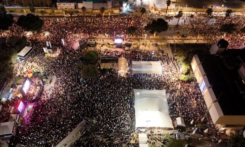 İsrail’in Tel Aviv kentindeki toplanan yüzelerce gösterici, Gazze’deki savaşın sona erdirilmesi ve rehinelerin özgür bırakılması talebiyle şov düzenledi.