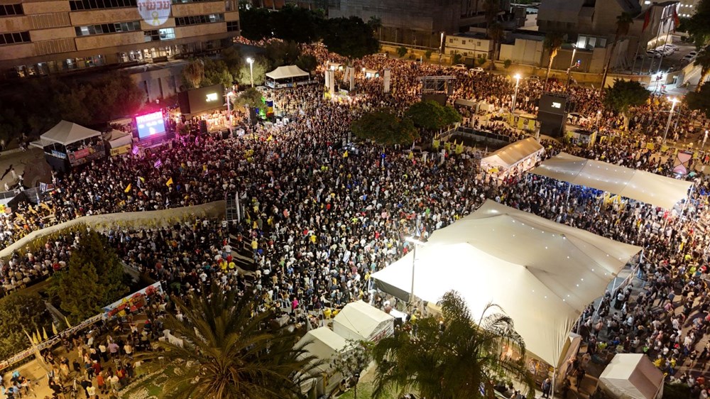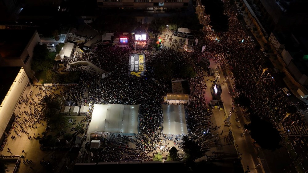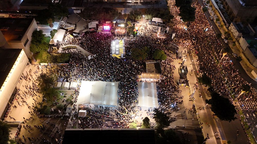 İsrail’in Tel Aviv kentindeki toplanan yüzelerce gösterici, Gazze’deki savaşın sona erdirilmesi ve rehinelerin özgür bırakılması talebiyle şov düzenledi.