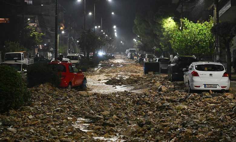 Yunanistan’da beklenen fırtına ve çok yağışlar afete neden oldu.